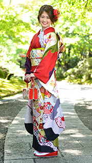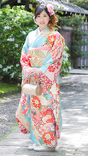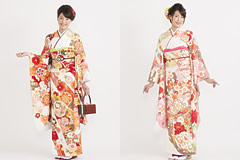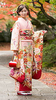 ホテル披露宴、神社挙式など重厚感のある場所では、古典柄のオーソドックスな振袖が会場にマッチします。