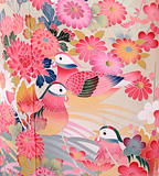 本格的な加賀友禅の逸品です。上品さと高級感が漂います。加賀染めの特長が良く出た振袖です。裾ぼかしの水辺におしどりが戯れるモチーフはお目出度い席には是非袖を通してほしい振袖です。
