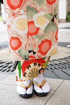 身丈が短い着物の場合は、長襦袢を見せてもオシャレなコーディネートとして楽しめます。