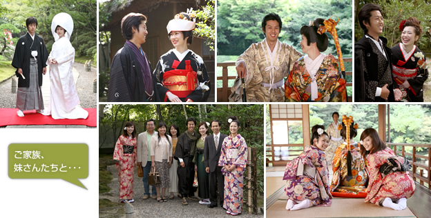 ただし、諸条件により難しい場合もございますのでご相談ください。 - ※お衣裳は、新郎様は紋付、オシャレなお着物からお選び頂けます。