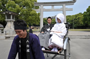 披露宴会場には人力車で移動しました。