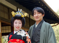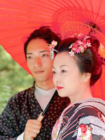 撮影の日は主人も一緒に着物を着ました。私は、レトロ・モダン・新和装、そして白無垢と3点の着物を存分に堪能しました。