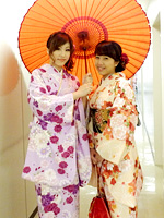 It was like a dream come true to wear KIMONO with my best friends ( We're from 3 different countries ) . We had lovely & wonderful KIMONOS . Lovely ladies helping us , too.