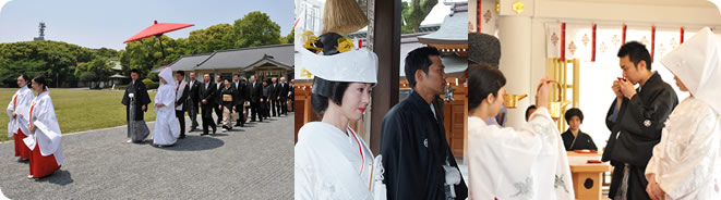 - ※お衣裳は、新郎様は黒紋付・袴になります。新婦様は、白無垢・色打掛け・引振袖からお選び頂きます。